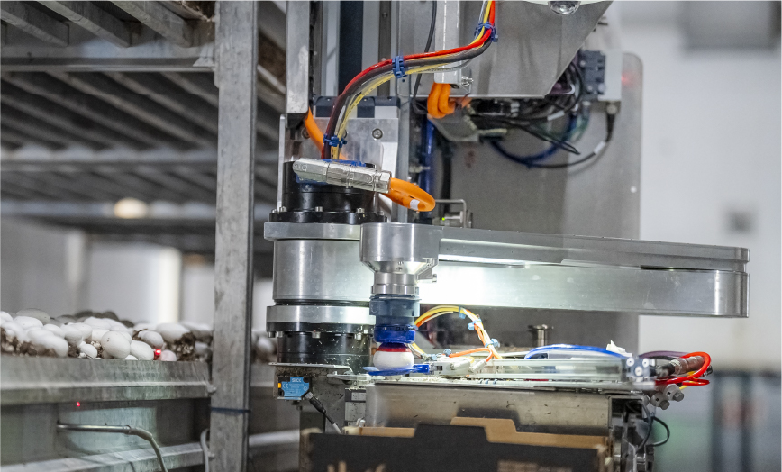 The 4AG+ project by 4AG (pronounced “forage”) Robotics aims to revolutionize mushroom farming through an advanced vision-guided robot system for 24/7 harvesting, processing, and packing. By integrating AI and robotics, the system addresses labour shortages, optimizes yields, and detects diseases. Key innovations include real-time analytics, growth tracking, climate control, and precision harvesting. This technology enhances productivity, reduces crop loss, and supports sustainable farming, boosting the global competitiveness of Canadian mushroom producers.